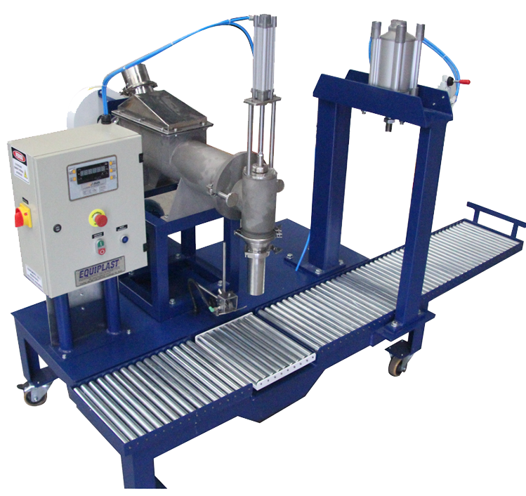 Este equipamento é composto por uma máquina dosadora que garante a precisão na dosagem, um sistema de alimentação de embalagens, que recebe as embalagens vazias de balde ou barrica, e um sistema de enchimento que realiza o preenchimento das embalagens com a massa corrida ou grafiato.